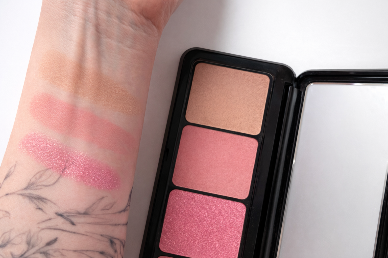 Tvářenky mají krásný finish, dobře se nanášejí a jsou dostatečně pigmentované. Ta s metalickým efektem bude ideální na léto, ale já ji nosím klidně i v zimě, protože krásně rozzáří mdlou a sušší pleť. Jediné mínus je, že při nabírání štětcem bronzer a matná tvářenka trochu více práší. Na pleti už je to ale v pořádku.